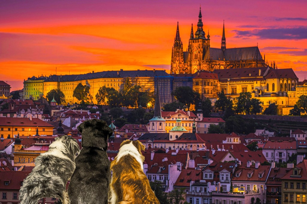 Wyatt, Jonah, and Owen admire tho Prague Castle in the distance